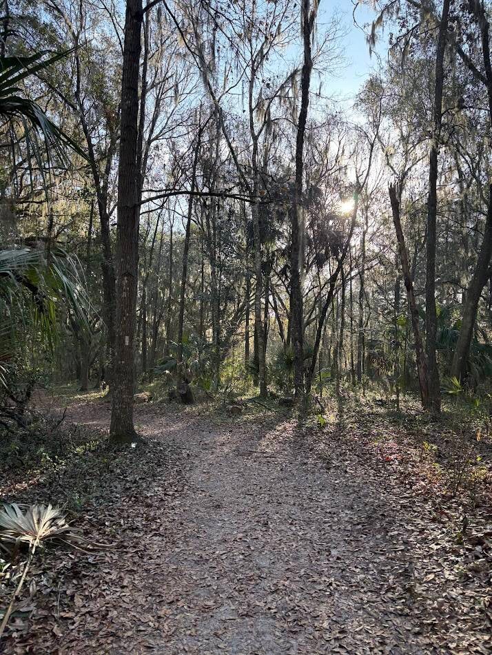 When we weren't riding bikes we enjoyed walking around the trails and in the campground with Rosie. Rosie loved seeing the armadillo and tried to chase one or two but was inhibited by the leash. A visit to the small town of Micanopy was a highlight with cute antique shops, art galleries and bakeries. We enjoyed delicious cake, coffee and we learned so much about the town. It was the town that the Doc Hollywood movie from 1991 was filmed in. One of the stores we were in was the hospital from the movie. Another one of the stores was the car repair shop from the movie. I think we will re-watch that movie now that we have been there.