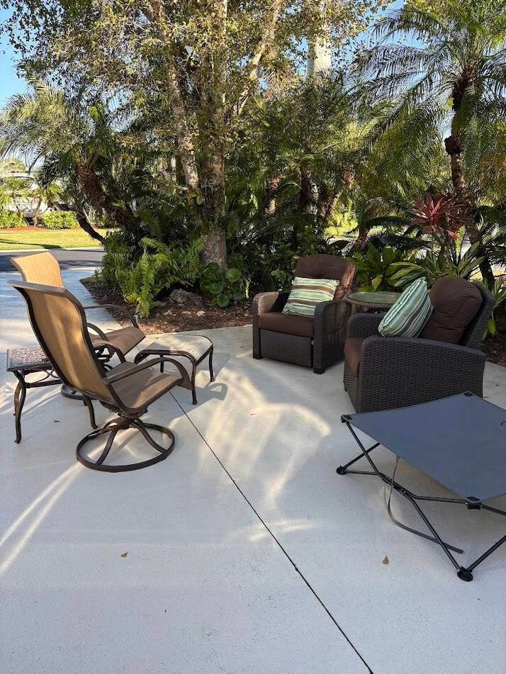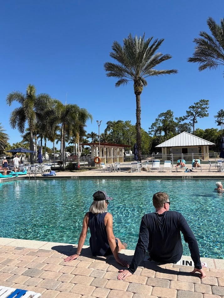 A short time before our arrival we were told that our original spot that we reserved was now unavailable. They moved us to spot 293 and it was a great spot. Close to the clubhouse, pool, pickleball and bark park! So many activities to enjoy at this park. We downloaded the app and began to get in tune with all of the activities to enjoy each day. When we arrived all of the outside patio furniture was in the coach house so we took it out and cleaned the coach house. Beautiful spot!