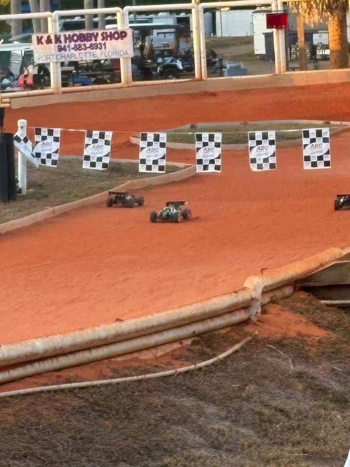 About 15 to 20 cars racing and competing for the number one spot at the end of the evening. Each heat of 5 to 6 cars completed 8 laps. Racing was so exciting with flips, jumps, speeding and crashes. Such a fun night complete with hamburgers and hot dogs to enjoy in the grandstands during the race.