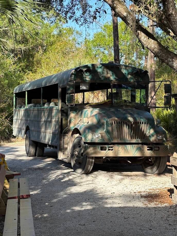 We rode in a windowless bus to see wildlife in nature - alligator, deer, cows, sandhill cranes, horses, blue heron and raccoon. Fun to experience with friends!